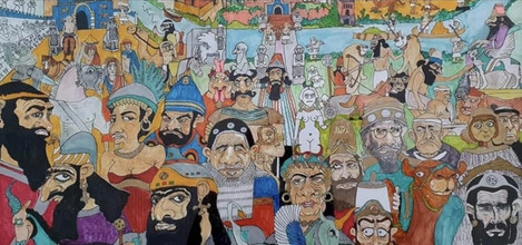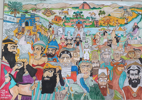 This ongoing painting series offers a whimsical yet historically accurate journey through the ages, capturing humanity’s milestones in a lively caricature style. From the dawn of the Stone Age and the reign of Pharaohs to the rise and fall of empires like the Sumerians and Napoleon’s era, each illustration blends humor with meticulous detail. This ever-evolving series extends into the present day, weaving a vibrant tapestry of our shared history while sparking curiosity and smiles.